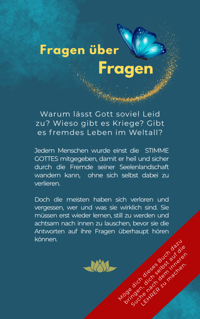Menschliche Fragen, die jeder gern an GOTT richten würde, wenn man IHN doch nur deutlich hören könnte. In diesem 376-Seiten-starken Buch beantwortete die göttliche STIMME alle Fragen, die ich von anderen Menschen gesammelt hatte. Darüberhinaus enthalten die Antworten weit mehr als das: nämlich auch den Weg dahin, wie du das innere Gehör für das HEILIGE schulen kannst.